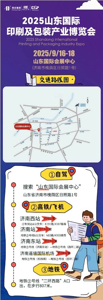2025山東國(guó)際印刷及包裝產(chǎn)業(yè)博覽會(huì) 展會(huì)時(shí)間/地點(diǎn) 展會(huì)時(shí)間 9月16日 9:30-16:30 9月17日 9:00-16:30 9月18日 9:00-14:30 展會(huì)地點(diǎn) 山東國(guó)際會(huì)展中心 山東省濟(jì)南市槐蔭區(qū)日照路1號(hào)(2號(hào)館)