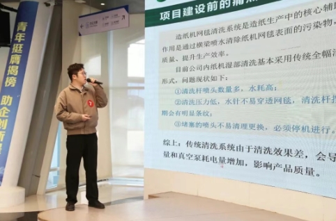 在工會的積極推動與持續改善部的專業支撐下,公司參賽項目表現亮眼。“六小”創新類比賽中,呂傳山主導的“利用制漿稀黑液加熱漿板機白水節省低壓蒸汽的方法”因顯著的節能降碳效果榮獲一等獎;李犇負責的“高壓網毯清洗系統在造紙機上的應用”獲二等獎;申家華團隊的“伺服電機在紙板攪拌器中的節能降碳應用”獲三等獎。技術攻關類賽道中,張永強團隊的“漿板機濕損池節能改造”項目憑借可觀的生產優化效益斬獲一等獎,俞寧主導的“AI技術在曝氣處理中的應用”獲三等獎。
