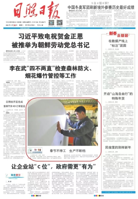 春節(jié)假期,作為日照市重點(diǎn)工業(yè)企業(yè)的亞太森博(山東)漿紙有限公司開啟無休模式,堅(jiān)持滿負(fù)荷生產(chǎn),工作人員堅(jiān)守生產(chǎn)一線,趕進(jìn)度、保生產(chǎn),用奮斗實(shí)干開啟馬年新氣象。 日照日?qǐng)?bào)