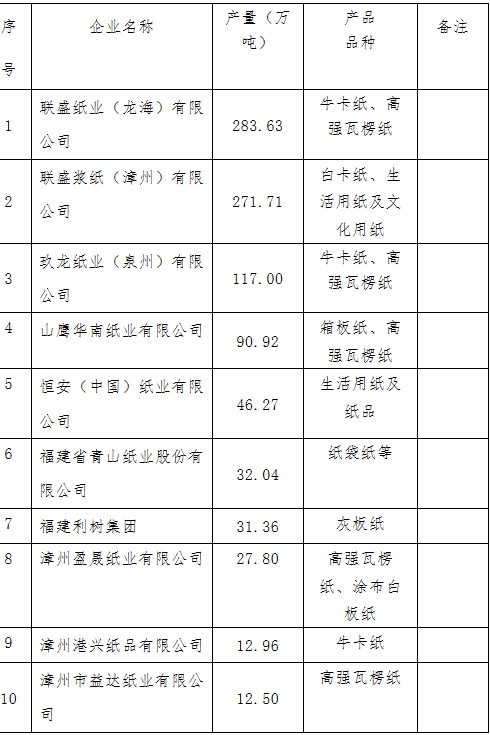 2025年,福建省造紙行業在調整中前行,整體呈現“產量增長、效益承壓、結構分化、綠色轉型加速”的發展態勢,而行業整體面臨需求不足、成本高企和產能過剩的三重壓力,企業盈利能力普遍下滑,但頭部企業憑借產業鏈一體化、產品差異化和精益管理保持韌性,中小企業則承壓明顯 。全省完成機制紙及紙板產量1166.56萬噸,同比增長11.1%,產量居全國第六位。 一、 生產完成情況 2025年,福建省規模以上造紙和紙制品企業535家,其中紙漿制造企業數2家,與去年持平;造紙企業數116家,同比減少4家;紙制品企業數417家,同比增加1家。全行業實現營業收入1153.14億元,利潤總額64億元,產銷率90.91%。機制紙及紙板產量1166.56萬噸,產量居全國第六位。具體情況如下: 1、紙漿:2025年紙漿產量120.44萬噸、同比增長94.6%; 2、機制紙及紙板:2025年機制紙及紙板產量1166.56萬噸,同比增長11.1%; 3、紙制品:2025年產量289.80萬噸,同比下降14%。 二、主要經濟指標完成情況 1、主營業務收入:2025年全行業主營業務收入約1153億元、同比下降0.4%。其中紙漿制造企業約2.1億元,同比下降5.5%;造紙企業約576億元,同比增長22.2%;紙制品制造企業約575億元,同比下降15.9%。 2、主營業務成本:2025年全行業主營業務成本約1002.5億元,同比下降0.4%。其中紙漿制造企業約1.7億元,同比下降8.2%;造紙企業約511億元,同比增長20.7%;紙制品制造企業約489.7億元,同比下降15.8%。 3、利潤總額:2025年全行業利潤總額約64億元,同比下降20%左右,主要是紙制品制造企業利潤下降較多。其中紙漿制造企業約0.1億元,同比增長66.7%;造紙企業約34億元,同比增長51%;紙制品制造企業約29億元,同比下降49.4%。 4、研發費用:2025年全行業研發費用投入約18.8億元,同比增長8.2%。其中制漿制造業投入約0.1億元,同比增長42.9%;造紙業投入約9.8億元,同比增長19.1%;紙制品制造業約8.9億元,同比下降1.9%。 5、產成品存貨:2025年全行業約39.2億元,同比下降1.1%。其中紙漿業約0.1億元,同比增長175%;造紙業約17.7億元,同比增長10%;紙制品制造業約21.4億元,同比下降9%。 6、平均用工人數:2025年全行業平均用工人數6.9萬人,同比下降8%。其中造紙業平均用工人數2.2萬人,同比下降8.3%;紙制品制造業平均用工人數4.6萬人,同比下降9.8%。 三、行業經濟運行情況 (1)未涂布印刷書寫用紙:2025年完成產量48.97萬噸,同比增長3.62%。 (2)生活用紙原紙:2025年完成產量82.65萬噸,同比增長30.45%。 (3)包裝用紙及紙板:2025年產量完成約821.99萬噸。 其中,高強瓦愣紙:2025年產量約208.49萬噸; 白卡紙:2025年產量約190.77萬噸; 牛卡紙:2025年產量約210.99萬噸; 箱板紙:2025年產量約44.52萬噸; 灰板紙:2025年產量約71.96萬噸; 涂布白板紙:2025年產量約60.97萬噸; 紙袋紙:2025年產量約23.87萬噸等。 (4)特種紙:2025年產量約36.62萬噸。 大型企業規模化程度進一步提高,造紙產量10萬噸以上企業有12家,合計產量為946.95萬噸,占2025年全省造紙產量的81.17%;產量20萬噸以上的企業有8家:聯盛紙業(龍海)有限公司、聯盛漿紙(漳州)有限公司、玖龍紙業(泉州)有限公司、山鷹華南紙業有限公司、恒安(中國)紙業有限公司、福建省青山紙業股份有限公司、福建利樹集團、漳州盈晟紙業有限公司,這8家企業合計產量900.73萬噸,占全省造紙產量的77.21%;產量50萬噸的企業有4家:聯盛紙業(龍海)有限公司、聯盛漿紙(漳州)有限公司、玖龍紙業(泉州)有限公司、山鷹華南紙業有限公司,這4家企業產量合計763.26萬噸,占全省造紙產量的65.43%。產量百萬噸以上的企業有3家:聯盛紙業(龍海)有限公司、聯盛漿紙(漳州)有限公司、玖龍紙業(泉州)有限公司。本年度,福建省尤溪永豐茂紙業有限公司、山鷹華南紙業有限公司、福建利樹集團等3家企業的產量增長達10%以上。以下為2025年造紙產量前十名的企業。 紙和紙板產量前十位企業