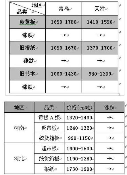 1月3日河南龍?jiān)磸U紙調(diào)價(jià)信息
