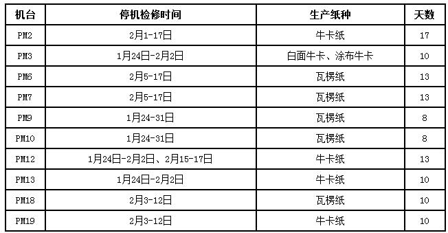 東莞玖龍紙業(yè)2017年春節(jié)期間瓦楞紙及箱板紙生產(chǎn)線停機(jī)安排(2017-01-11)